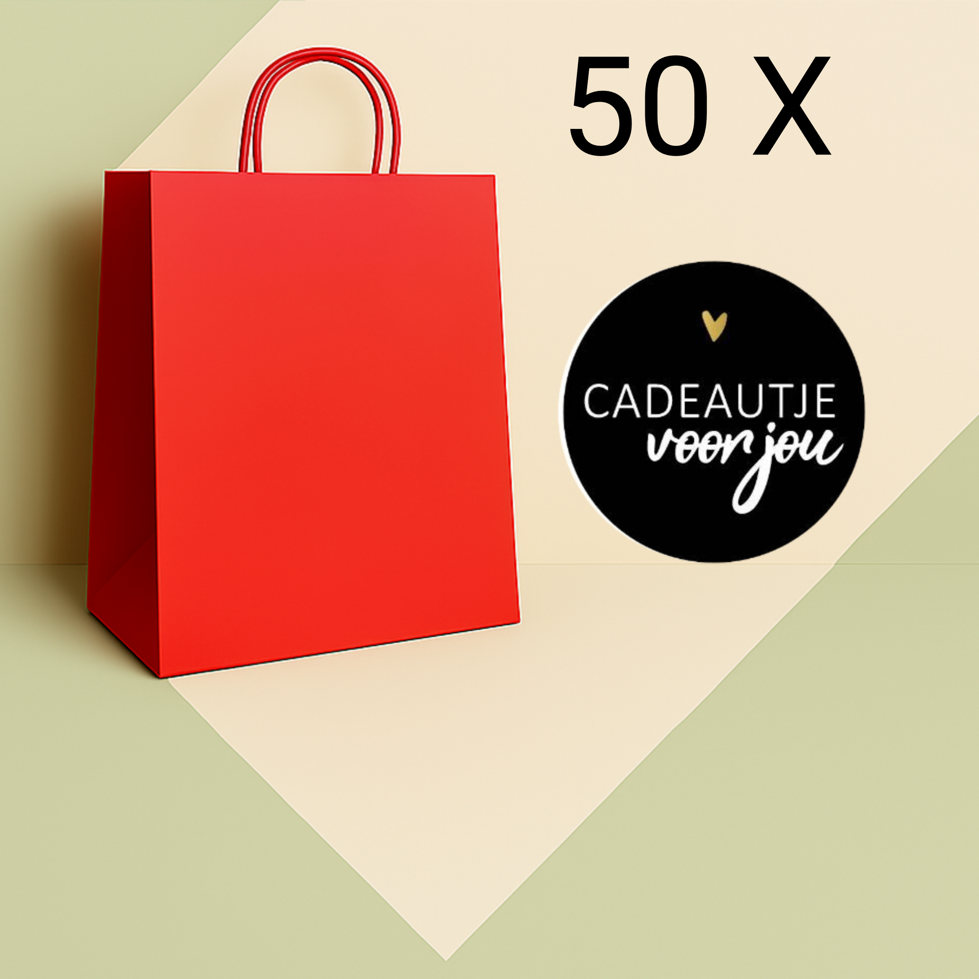 HGN Papieren Tasjes -50 rode Cadeautasjes van 22x18x8 cm-Incl 50 zwarte Stickers