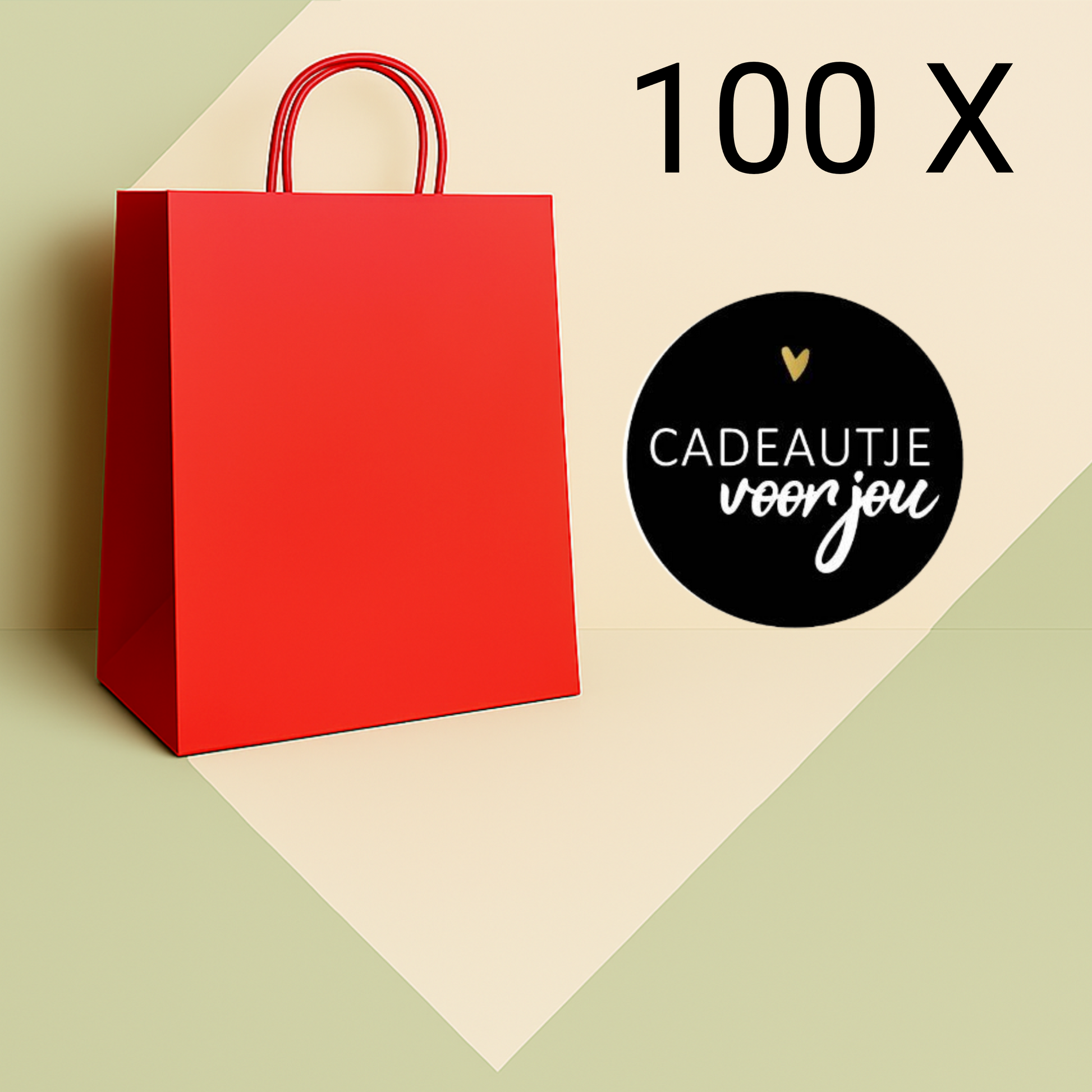 HGN Papieren Tasjes -100 rode Cadeautasjes van 22x18x8 cm-Incl 100 zwarte Stickers
