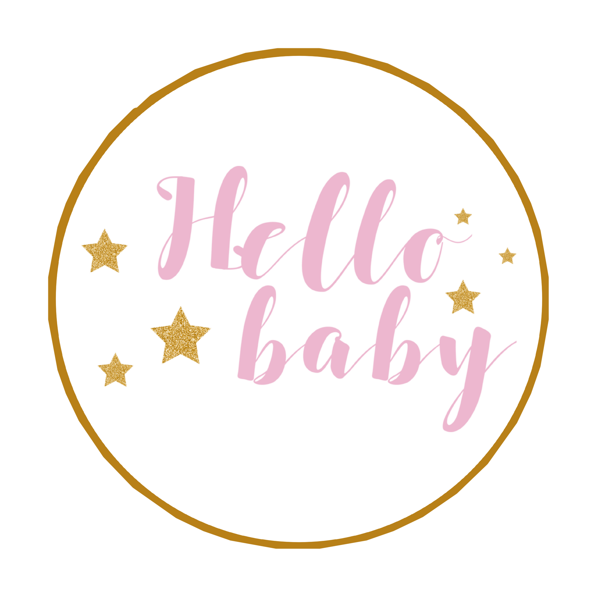 ronde sticker met de tekst Hello Baby in het roze