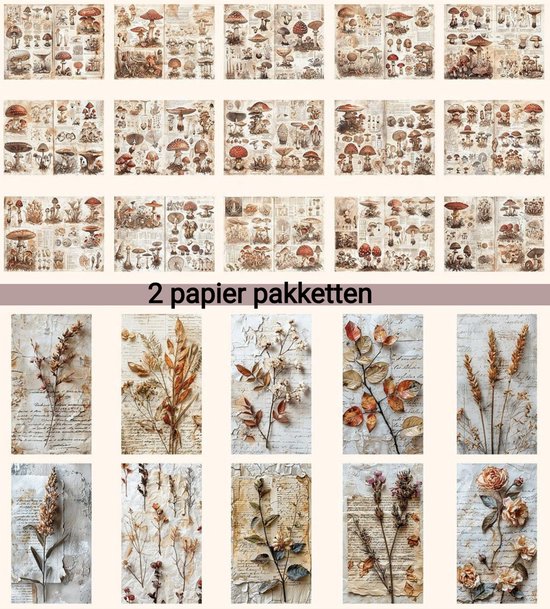 - Pakket 1: 30 vellen designpapier ieders 10,5x14 cm met paddenstoelen