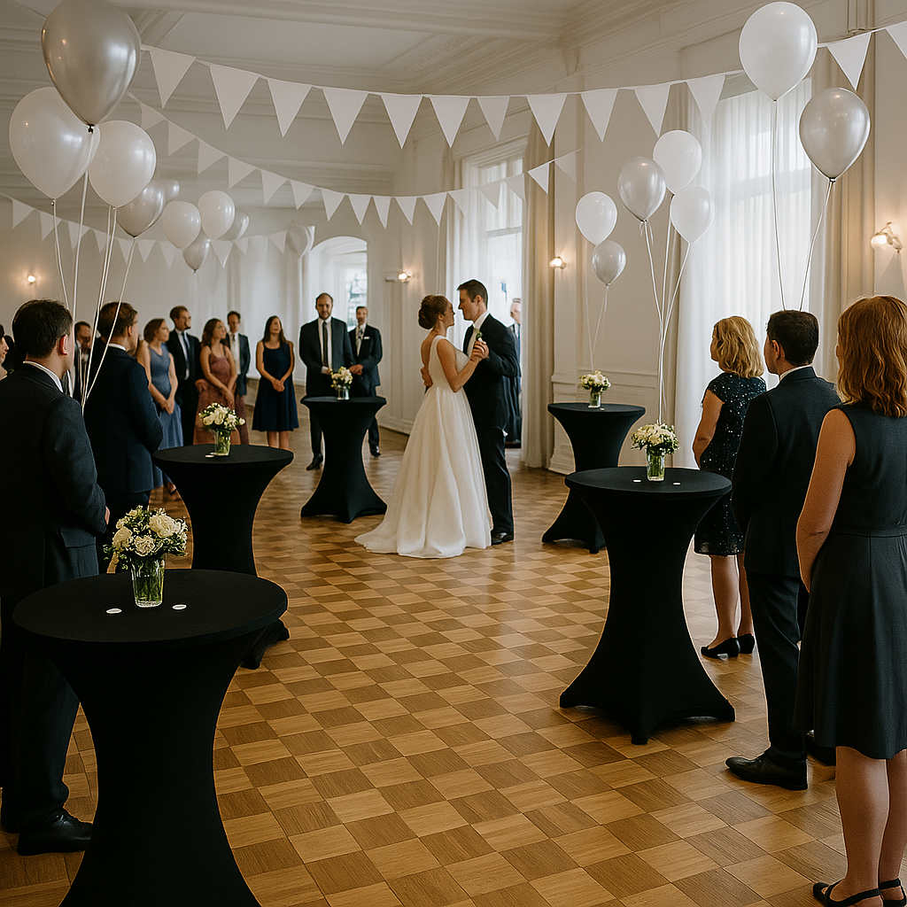 Deze set van 5 zwarte statafelhoezen met bijpassende topcovers is dé oplossing voor een nette en luxe uitstraling op feesten, beurzen of zakelijke evenementen. Dankzij de combinatie van polyester en spandex sluit de hoes perfect aan op tafels van Ø80–85 cm en 110 cm hoog. De stof is hoog elastisch, kreukvrij en eenvoudig te reinigen. De voetjes zijn extra verstevigd zodat de hoes niet zo snel scheurt aan de onderkant.