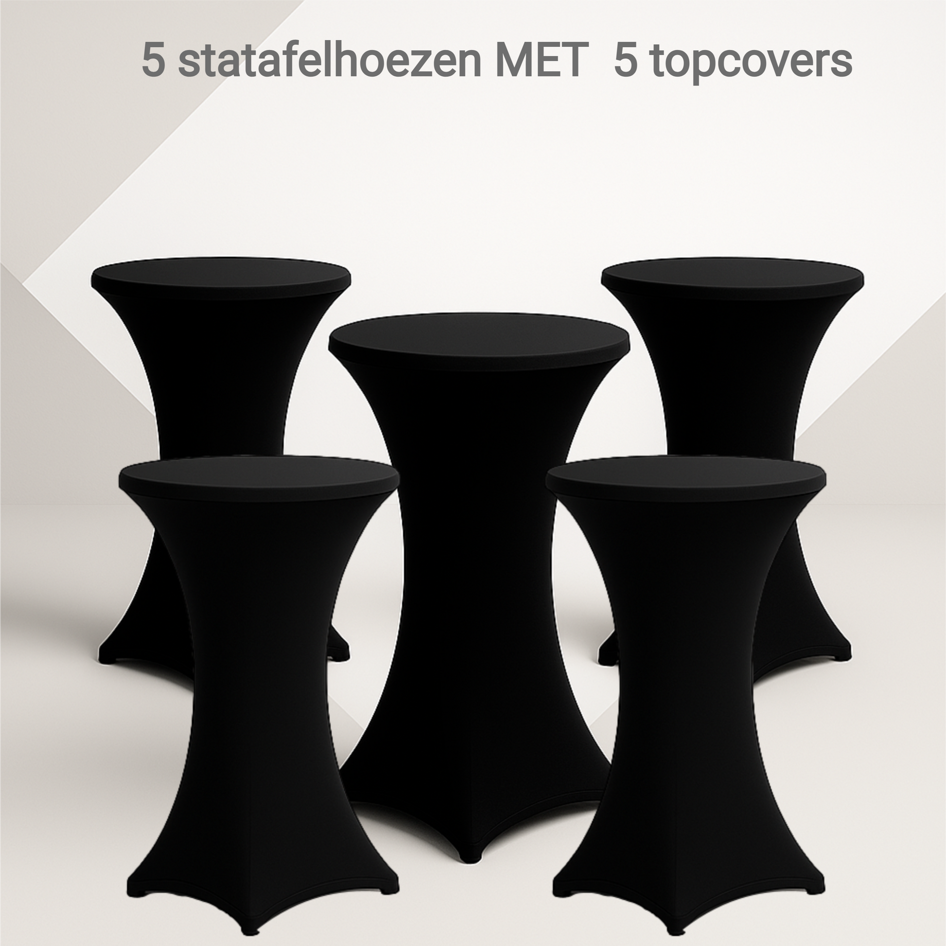 5 stuks zwarte Statafelrokken met Topcovers - H110cm X Ø80-85 cm