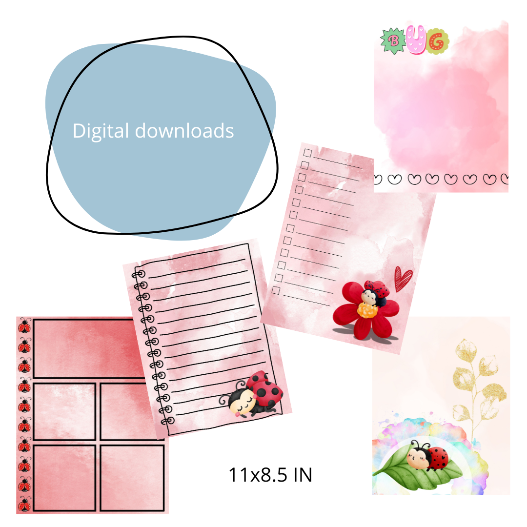 Lady Bug 25 pages for Junk Journal - Plannerpages - Artjournal- digitale download