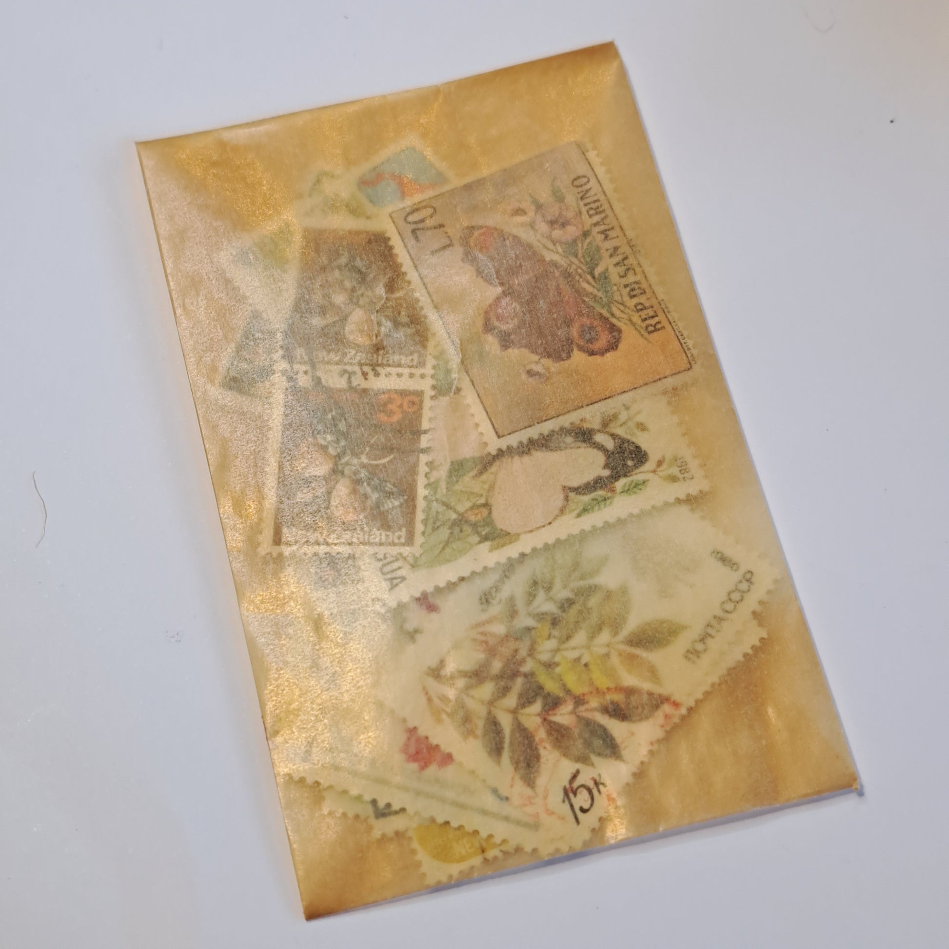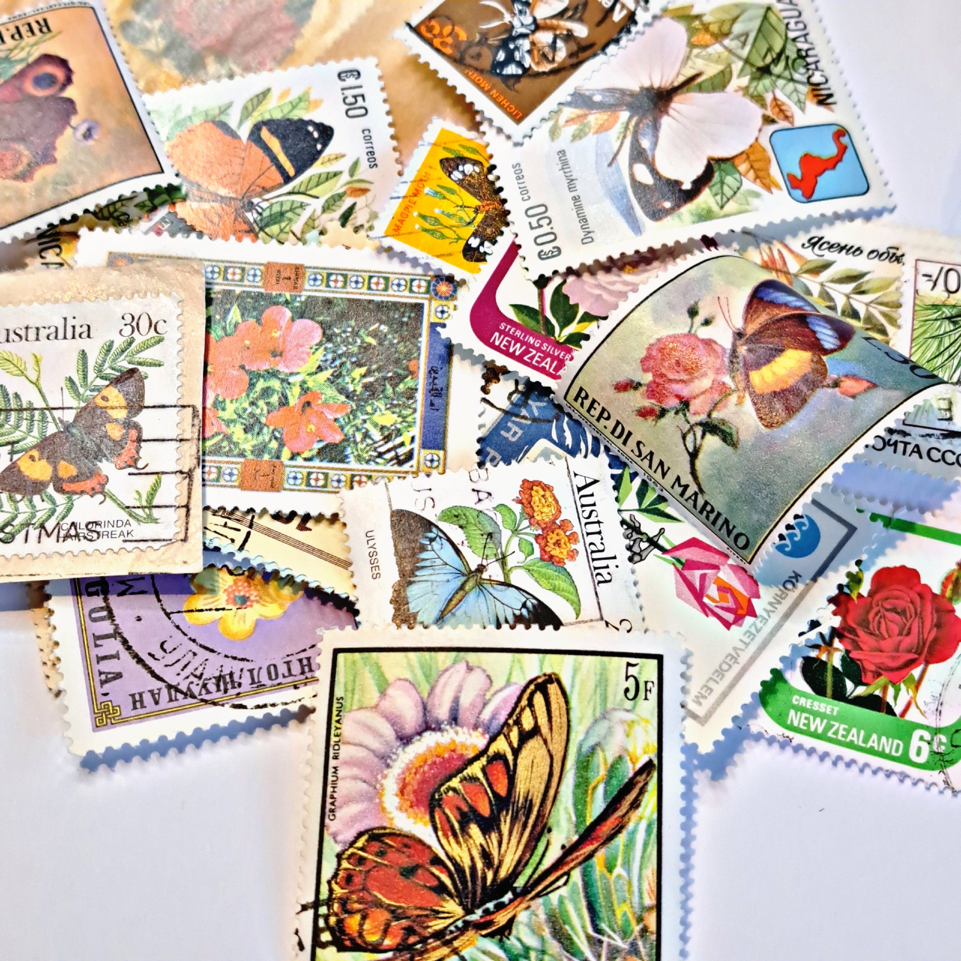 帶有花朵和蝴蝶郵票的舊郵票袋